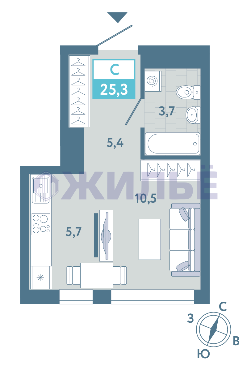 1-к квартира в ЖК «AIRIS», 25 кв.м., г. Тюмень, Комарово Парк (№108245)