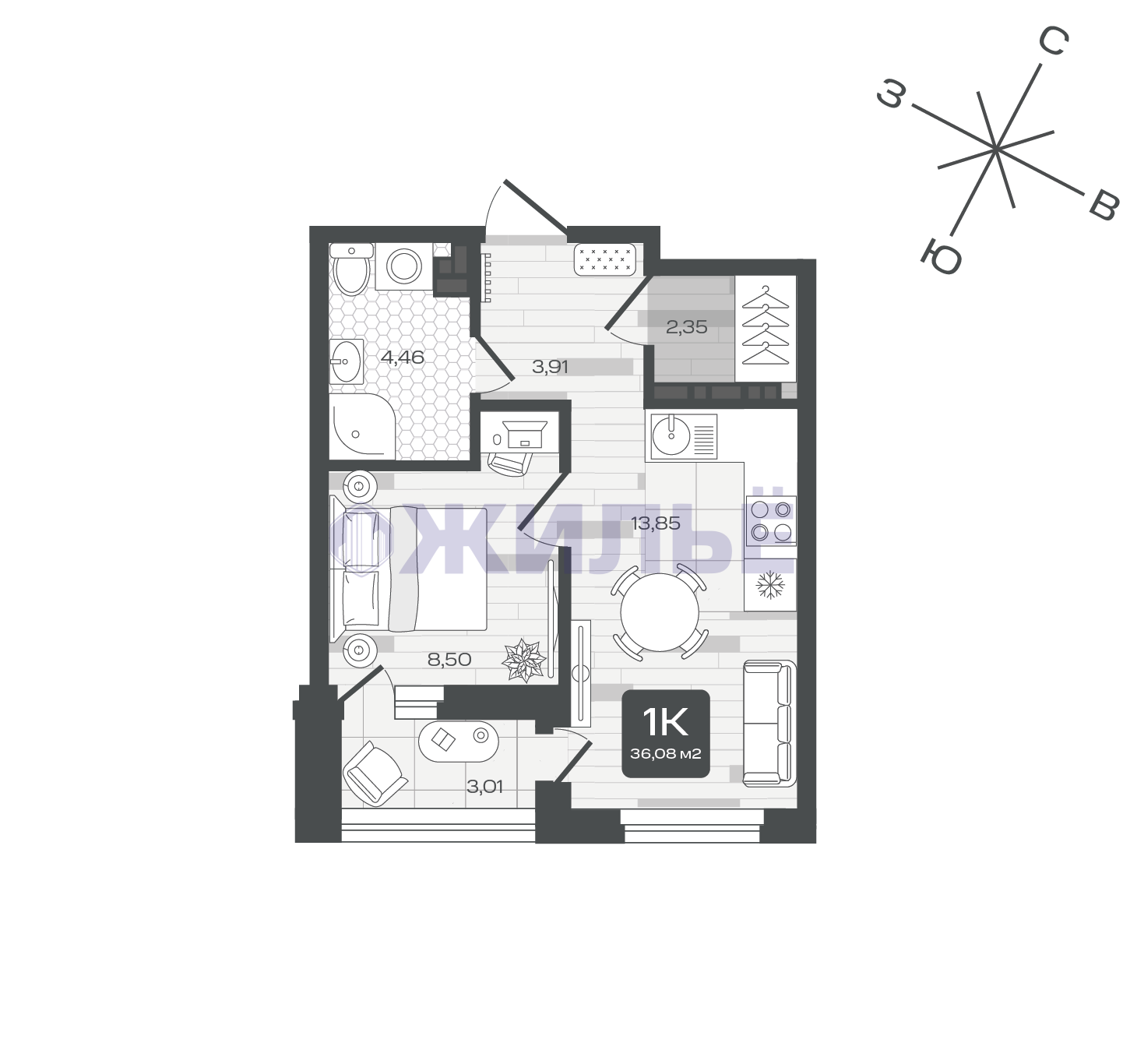 1-к квартира в ЖК «Дабл-Дабл», 36 кв.м., г. Тюмень, ул. Московский тракт (№107968)