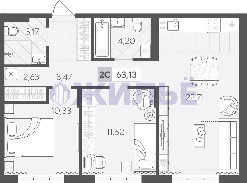 Квартал у Озера — это малоэтажные дома в скандинавском стиле, расположенные в живописном районе между озёрами Песьяное и Чистый пруд. Низкая плотность застройки, близость природы и разнообразие прогулочных маршрутов позволят насладиться покоем и отдохнуть от городской суеты. Двухкомнатная квартира 63.13 кв.м на 2 этаже — идеальный вариант для молодой семьи или пары. Просторная кухня-гостиная станет местом семейных встреч, а две спальни обеспечат удобство и приватность для каждого.Ваш персональный менеджер