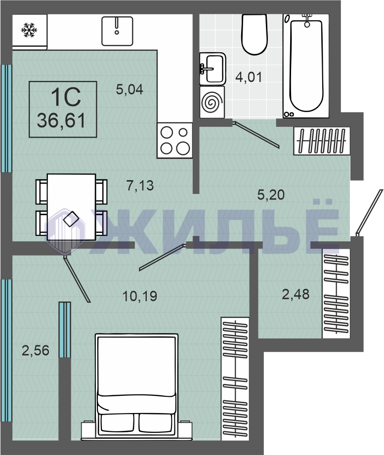 1-к квартира в ЖК «ЖК Энвилль», 36 кв.м., Алексея Маресьева, 37/1 (№106947)