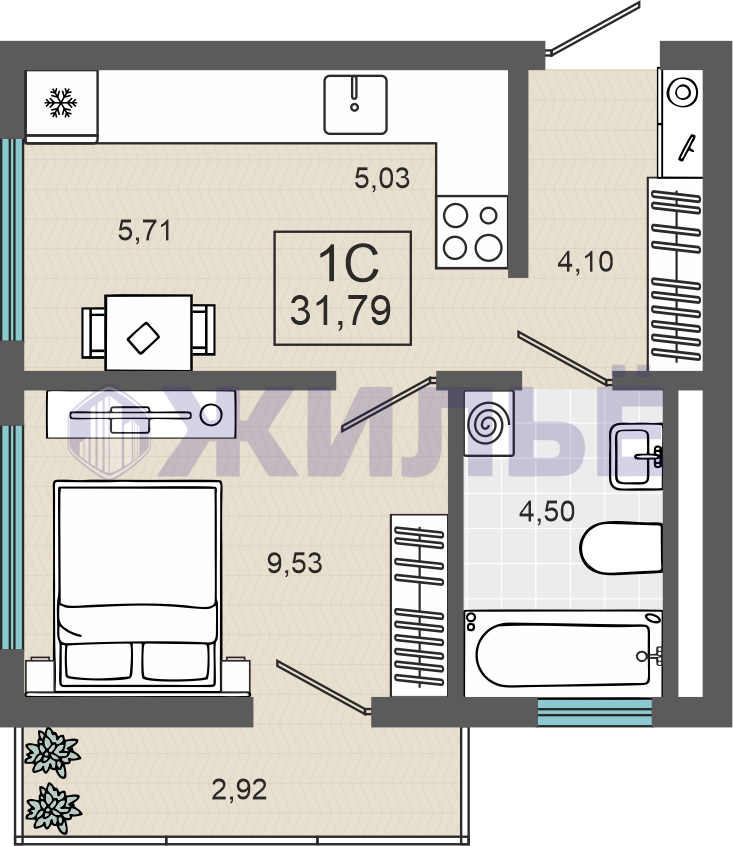 1-к квартира в ЖК «ЖК Энвилль», 31 кв.м., Алексея Маресьева, 37/1 (№106974)